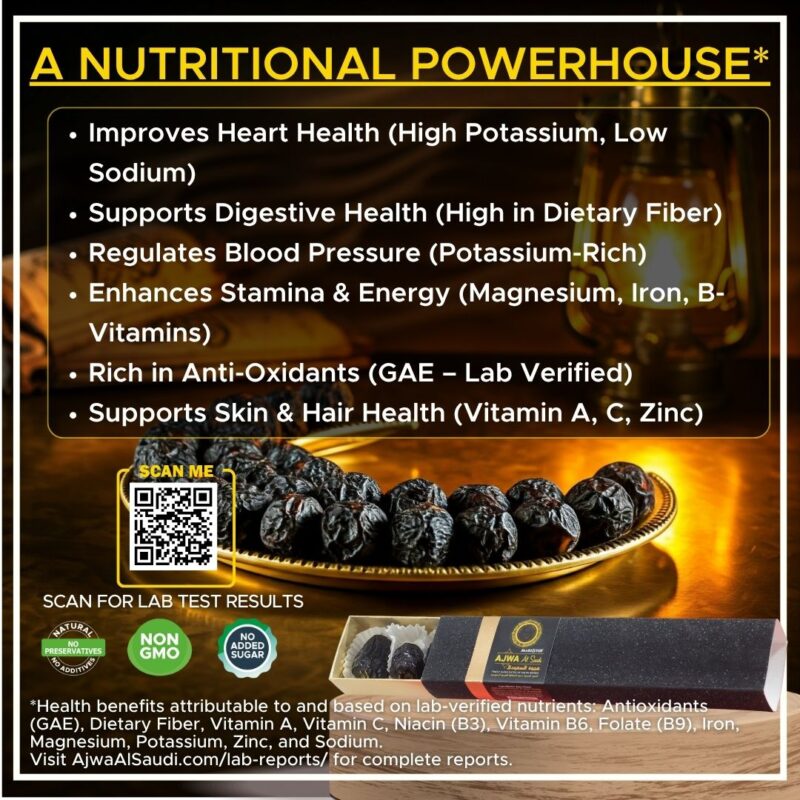At Markstor, each product is packed with love and care. Our Ajwa dates are stored in a 100% food-grade, recyclable box to maintain freshness. With a focus on hygiene and quality, we make sure every box is packed with the utmost attention to detail. The commitment to quality doesn’t stop there. Each batch of our Ajwa Al-Saudi dates undergoes rigorous lab testing for biological contaminants, ensuring adherence to the highest safety and hygiene standards.