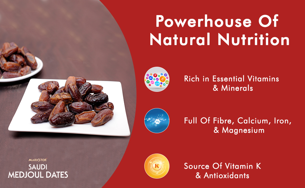- NUTRITIONAL PROFILE: Naturally sweet and fat-free, Markstor Saudi Medjoul dates are an excellent source of energy, owing to high levels of natural sugars like glucose, fructose, and sucrose.