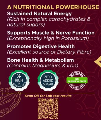 The original “Sweets” of nature, dates are one of the top Super Foods which have numerous health benefits. Dates are rich in vitamins and minerals. They are low in cholesterol and contain very low fat. Dates are rich in iron, potassium, sodium, and fluorine. They help improve the digestive system as they contain soluble and insoluble fibers and various kinds of amino acids. They provide instant energy and are a natural and tasty snack for children and adults alike.